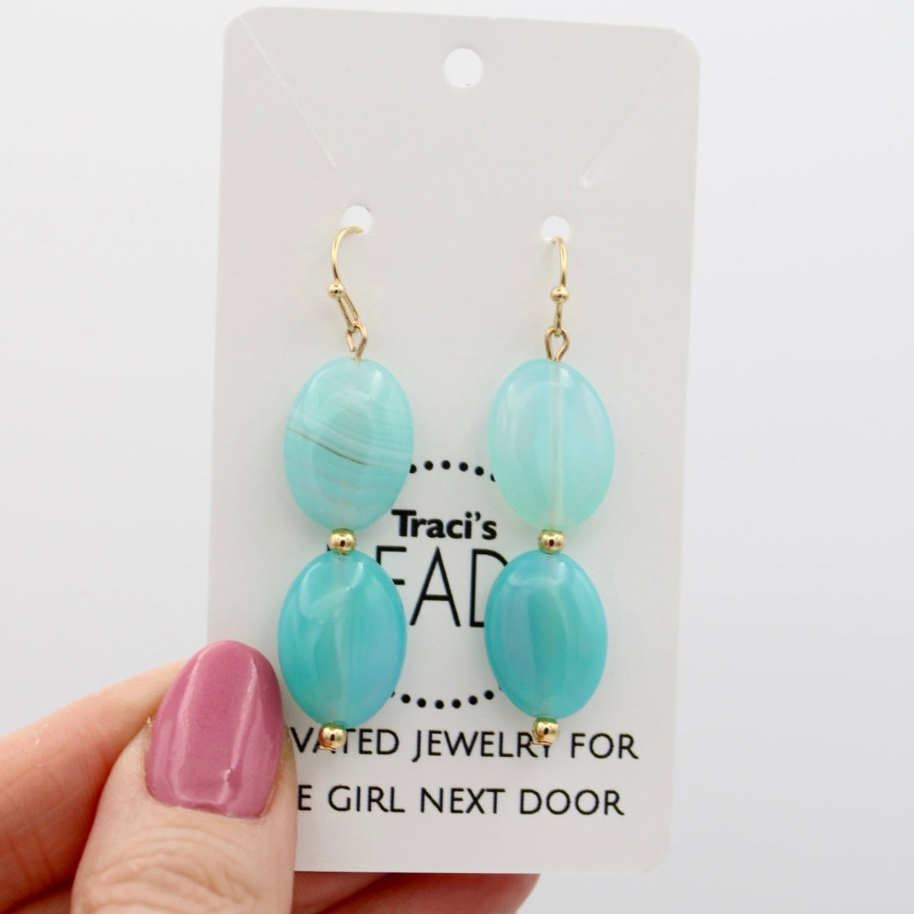 Soft shades of aqua sardonyx beads create a serene, coastal feel in these beautiful earrings. Inspired by quiet mornings by the water, Calm Waters is designed to bring a sense of ease and calm to your everyday style. Each bead features natural variation. Earrings measure about 2" total length. Includes rubber earring backs. Don't miss the matching necklace!