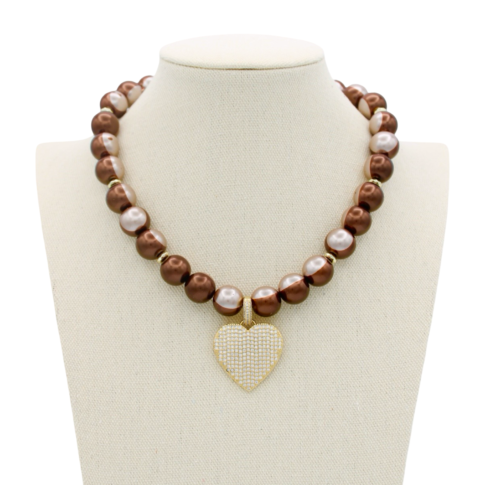 Vibrant chocoloate brown and taupe colored glass pearls paired with a shimmering cz heart pendant, making it the perfect piece for party season, date nights, and every celebration in between. Available in five saturated, cocktail-inspired hues, it brings a pop of color and joy to any outfit. Approximately 16" + 2" extender. Ships beautifully packaged.