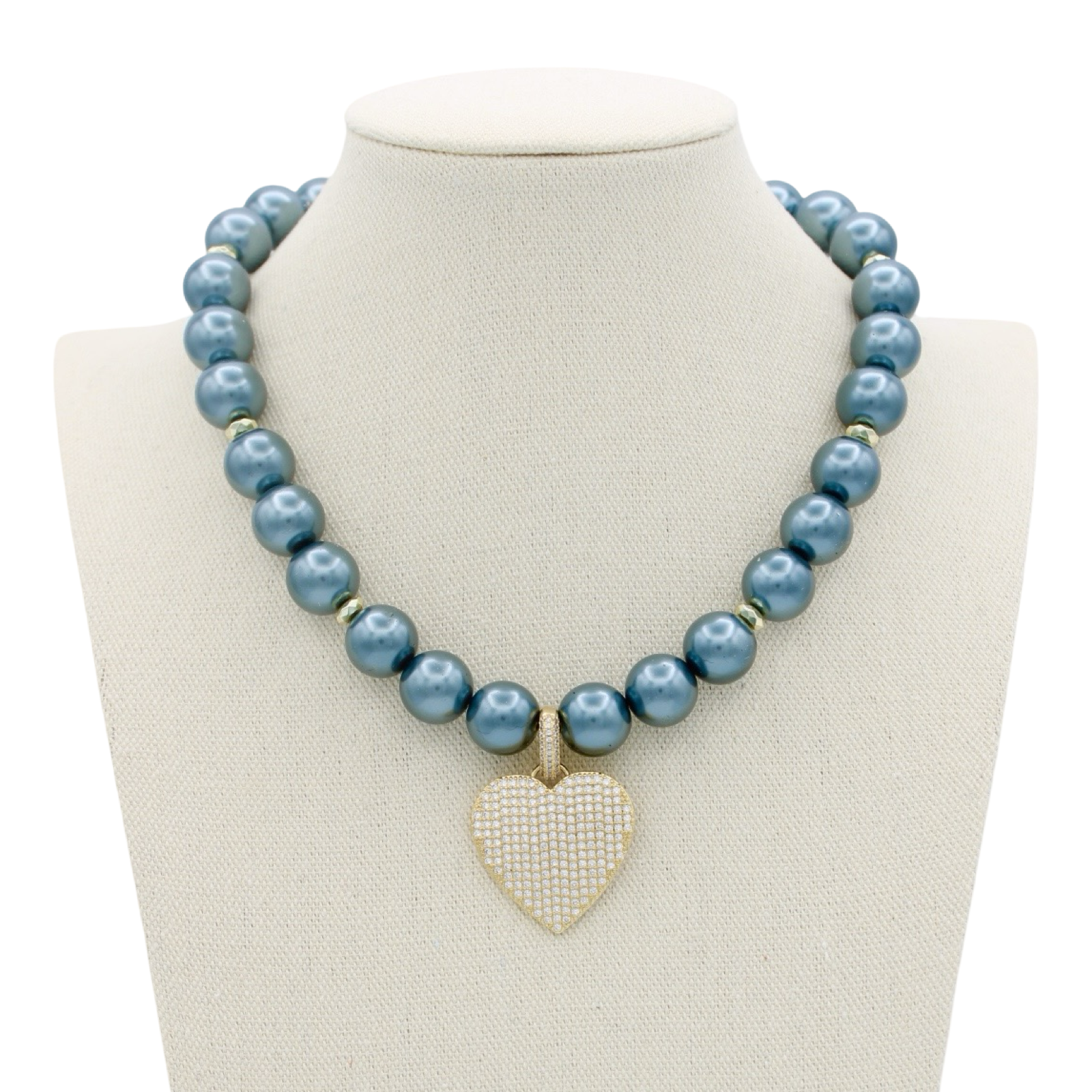 Vibrant grayish blue colored glass pearls paired with a shimmering cz heart pendant, making it the perfect piece for party season, date nights, and every celebration in between. Available in five saturated, cocktail-inspired hues, it brings a pop of color and joy to any outfit. Approximately 16" + 2" extender. Ships beautifully packaged.