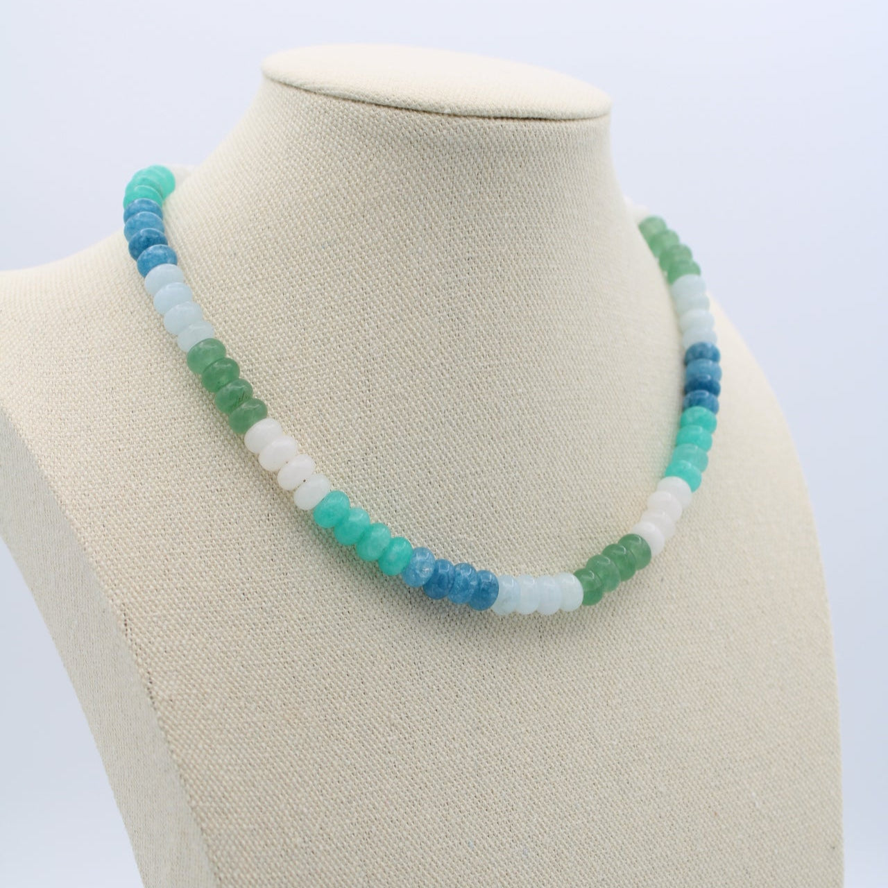 Inspired by the crystal-clear waters and lush landscapes of the Virgin Islands, The Saint Thomas necklace blends ocean blue, sea green, and soft white beads in a palette that feels like a Caribbean escape. Each bead reflects the tranquility of island tides and coastal skies, offering a fresh, elegant pop of color. Lightweight and luminous, this piece brings resort-luxe energy to everyday wear.