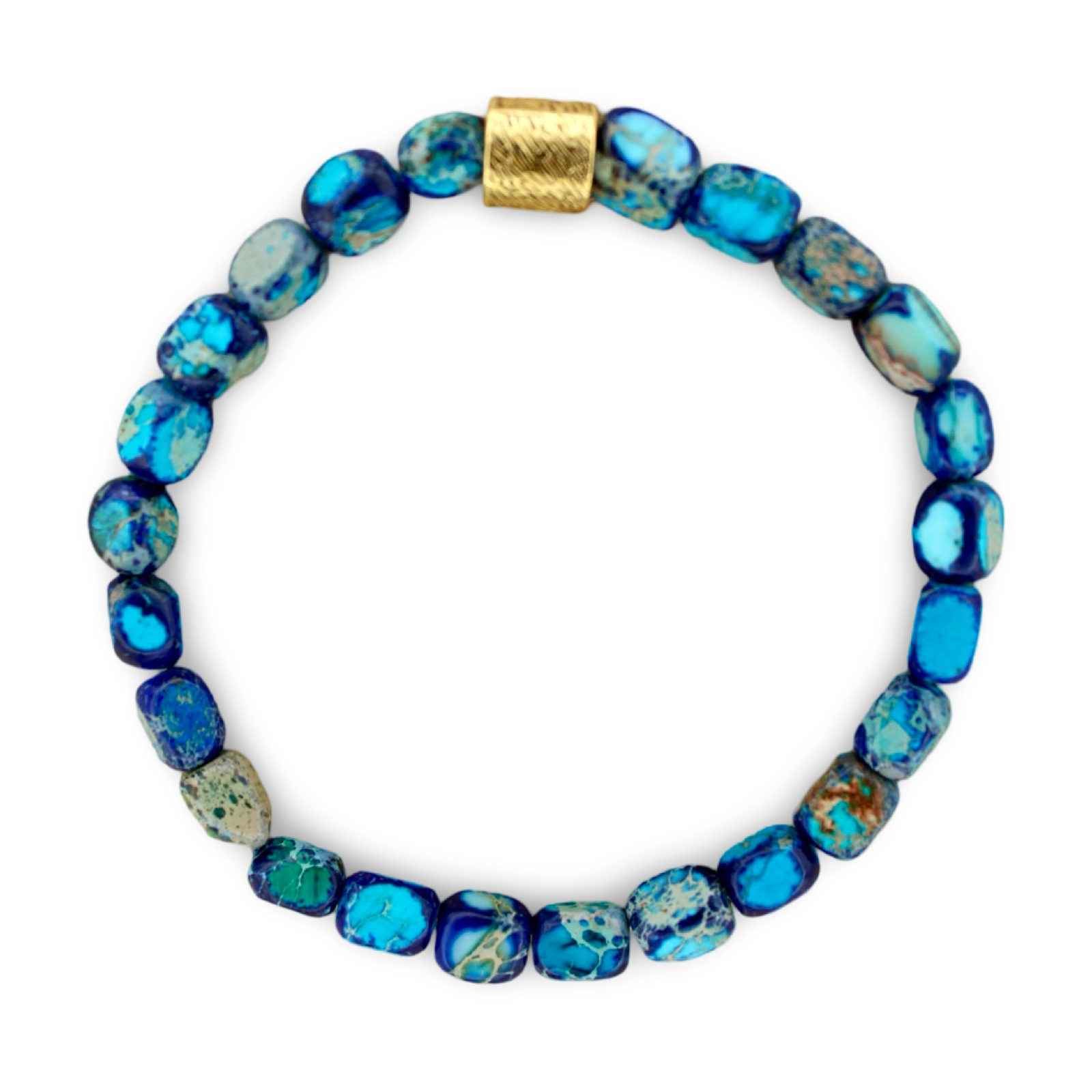 The Stella Mare collection features assorted cube-shaped Variscite beads in softly weathered hues that feel both earthy and refined. Organic elegance and natural texture available in three beautiful colorways—Sea Moss, Moonwater, and Tideberry.