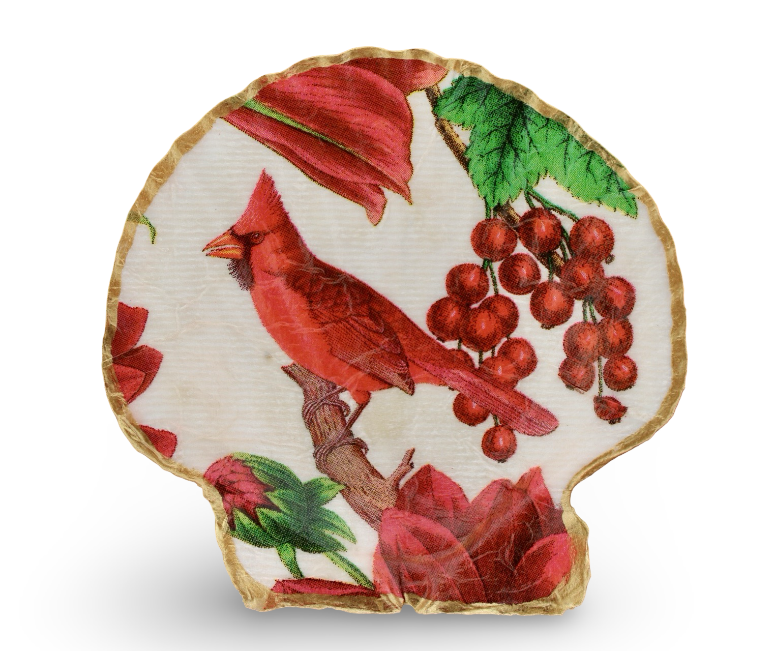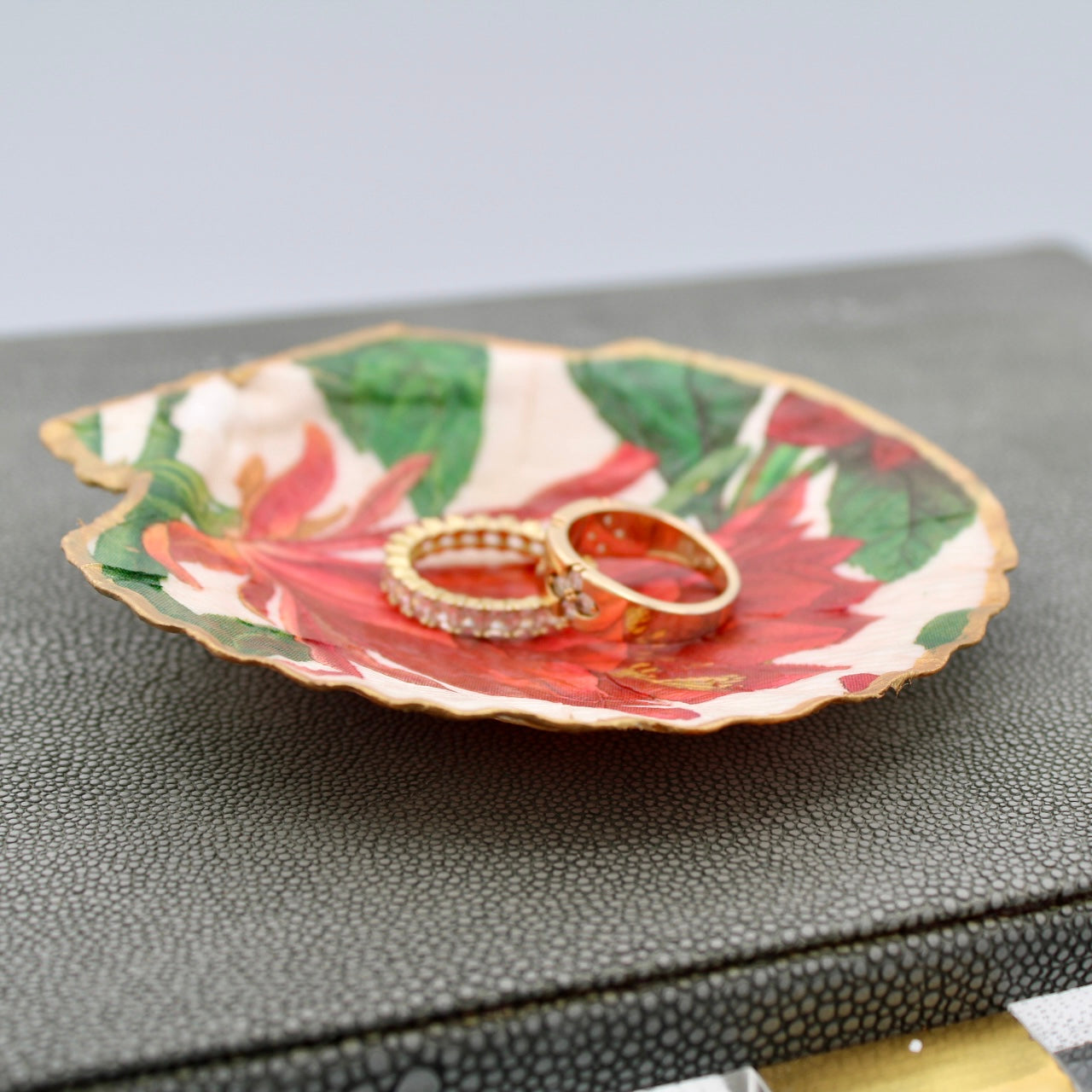 Each of these one-of-a-kind jewelry dishes begins as a natural sea shell, carefully selected for its organic shape and beauty. Measuring approximately 4–5 inches, no two are ever exactly alike. The interior is artfully decoupaged with custom designs and finished with hand-painted gold edges, adding a touch of coastal luxury.
